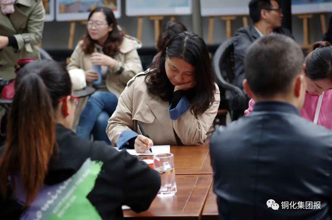 “好香啊,真是神仙處所!”“腦洞夠大呀,在這兒培訓(xùn)也是享受!”一進(jìn)門,通訊員們便被書院典雅秋色和濃郁桂香所吸引,就連《銅陵日報》與《銅化集團(tuán)》報的4位老師也忍不住贊嘆:“花香伴書香,確是看書、學(xué)習(xí)的佳境!”幾張小桌拼湊在院里的桂花樹下,小方凳圍坐一圈,培訓(xùn)班正式開課。沒有電子屏,也沒有刻意準(zhǔn)備的課件,一縷花香,一杯清茶,拋開拘謹(jǐn),“師生”促膝圍坐,開啟了“嘮嗑”式培訓(xùn)。通訊員們把平時找新聞、寫新聞過程中遇到的困惑、難事拿出來發(fā)問求解,4位編輯老師也結(jié)合多年采、寫、編經(jīng)驗和現(xiàn)實所遇事例盡心為大家答疑解惑,通訊員們之間還結(jié)合自己見報之作分享了各自心得。