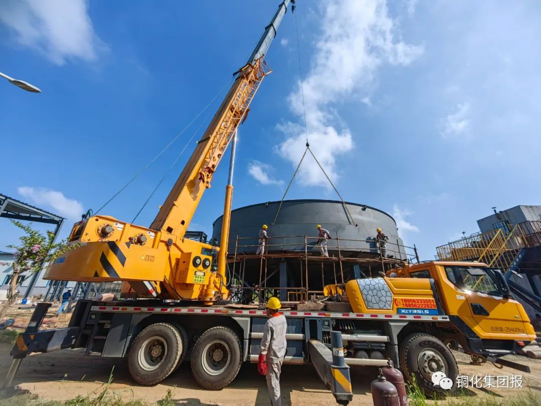 項目完工投用后,每年可處理選礦廢水247.5萬立方米、酸性廢水1000萬立方米,去除COD1485噸、硫化物146.03噸、重金屬錳208噸,在保障原生產(chǎn)線正常運行的同時,顯著降低相關(guān)污染物排放,實現(xiàn)外排水水質(zhì)穩(wěn)定達(dá)標(biāo),有效保護(hù)當(dāng)?shù)厮h(huán)境,環(huán)境效益和社會效益顯著。上圖為吊裝作業(yè)現(xiàn)場。