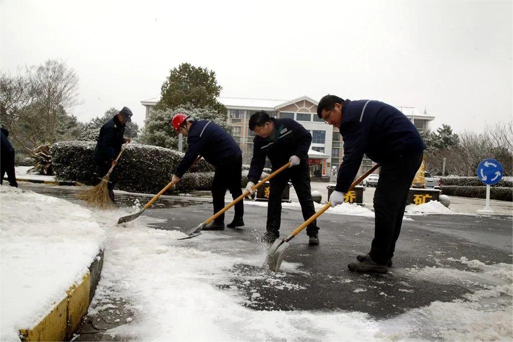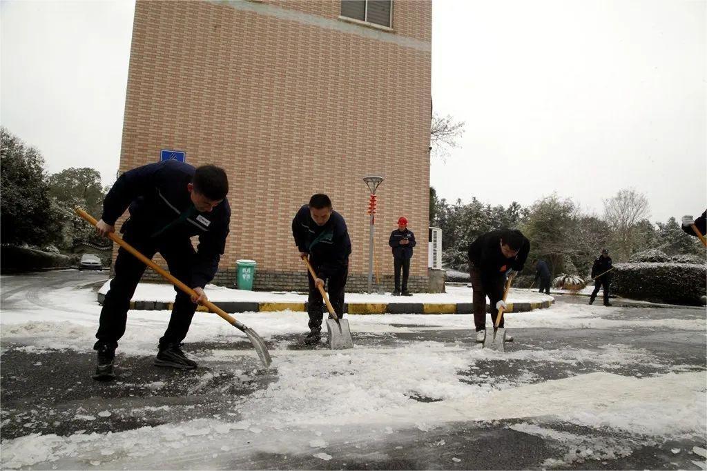 生產管理部組織員工清理辦公樓廣場積雪,確保進出員工、車輛安全通行。